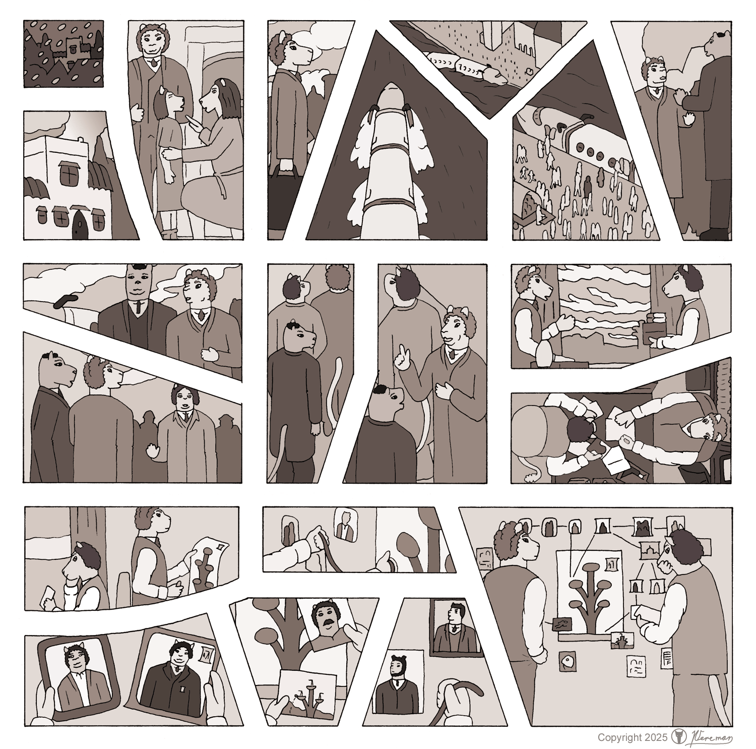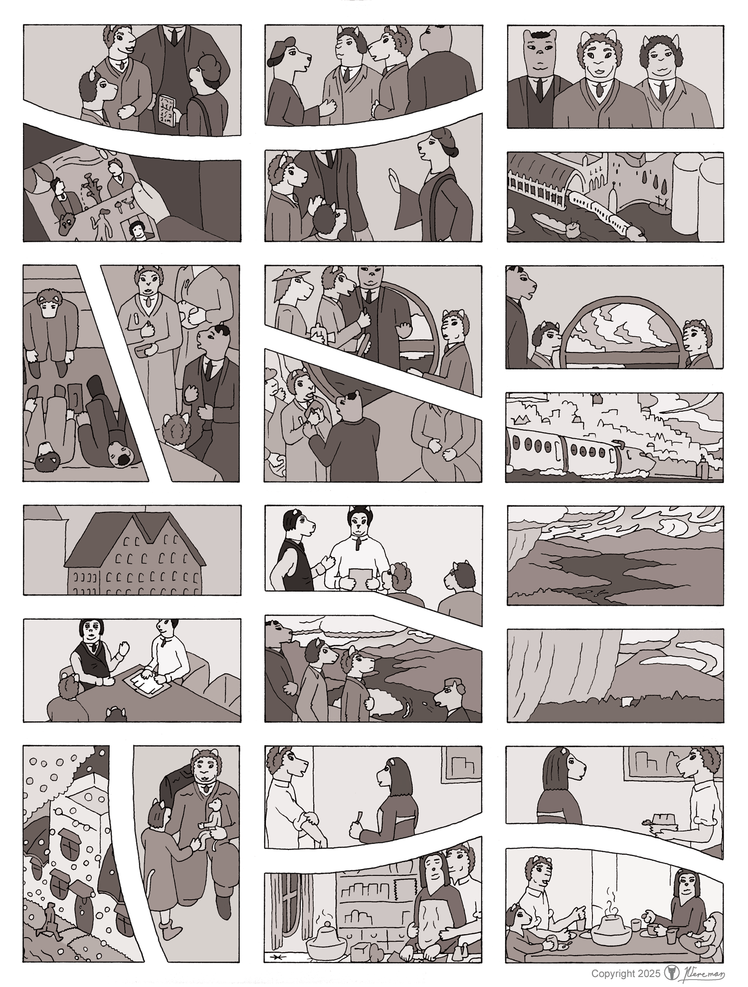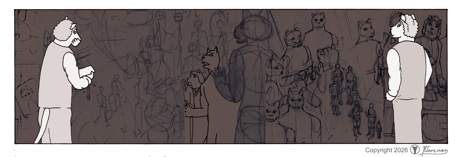 Seeing The Horizon follows a number of characters while covering a series of controversial topics that arise in society. Published as a web comic, every Wednesday a new comic strip is added to the continuous story line. In the fictitious universe the characters are catlike humans, while the story is illustrated with little to no text.
